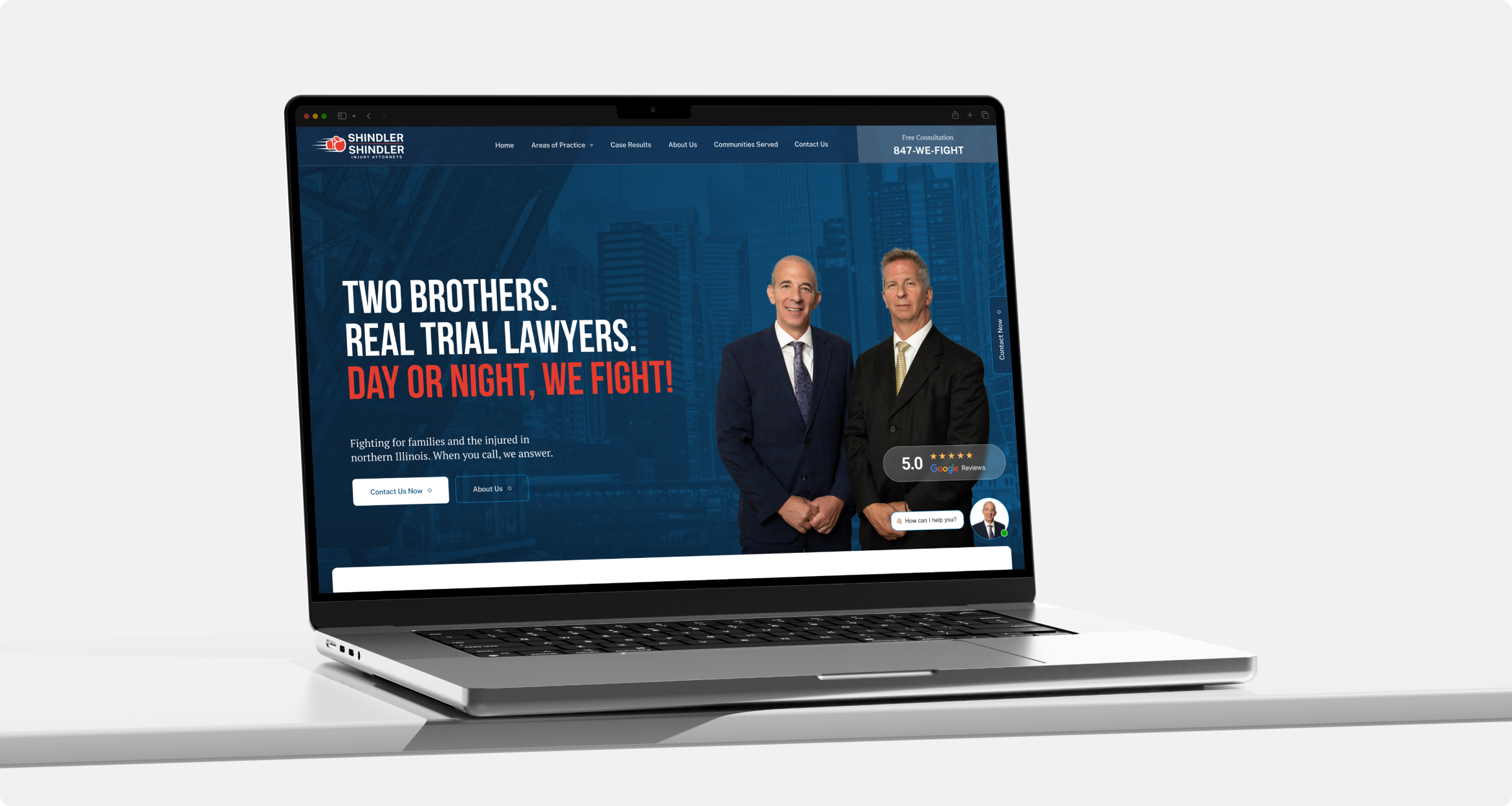 The site’s clean layout, bold headlines, and clear calls to action make it easy for visitors to get in touch or explore the firm’s results. Bold headlines convey confidence and authority, guiding users through the content with clear, scannable messaging that reflects the firm’s no-nonsense, trial-driven brand. Using images of the two brothers humanize the firm, highlighting its personal, family-run approach while reinforcing trust, credibility, and client-focused professionalism.