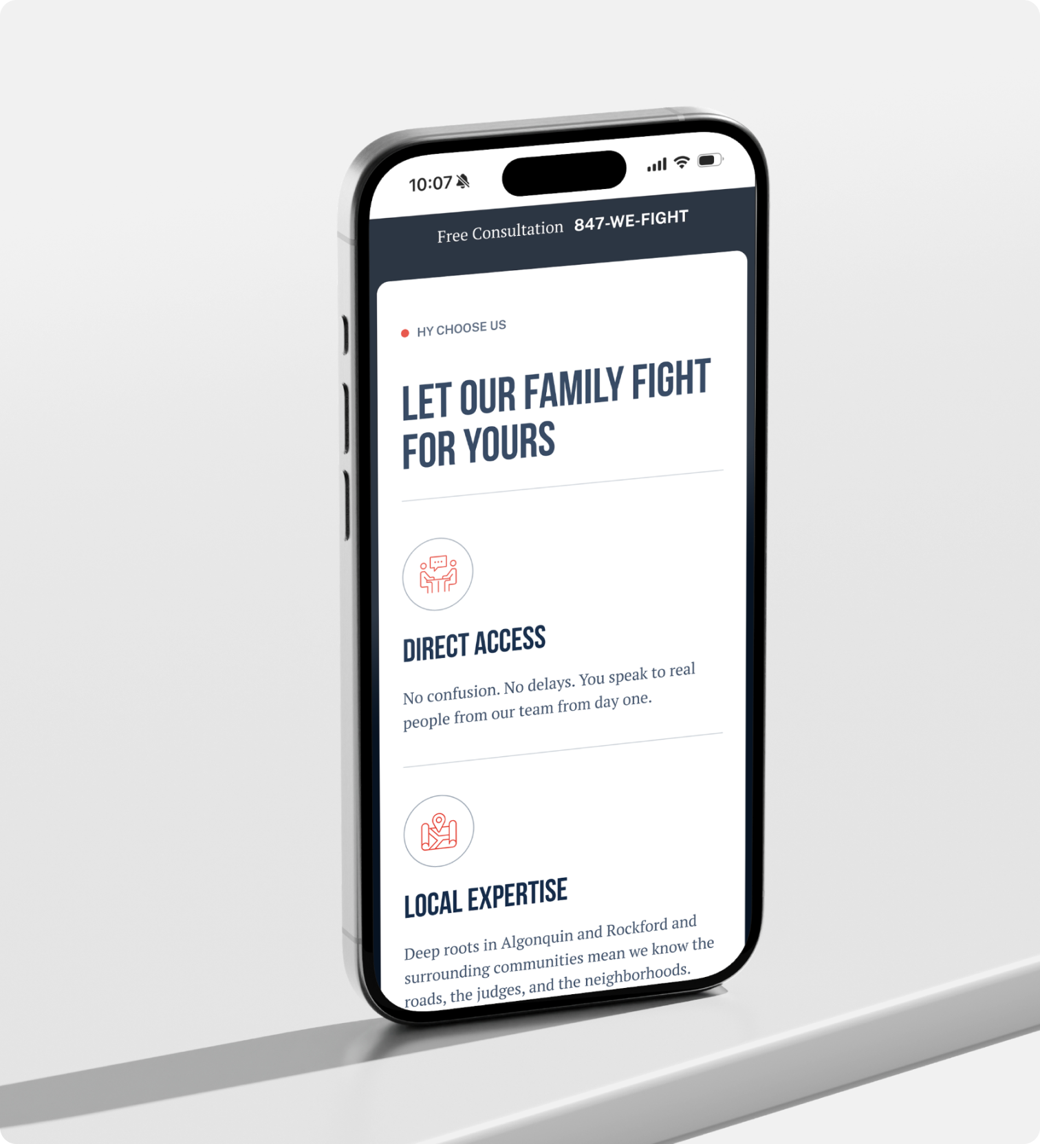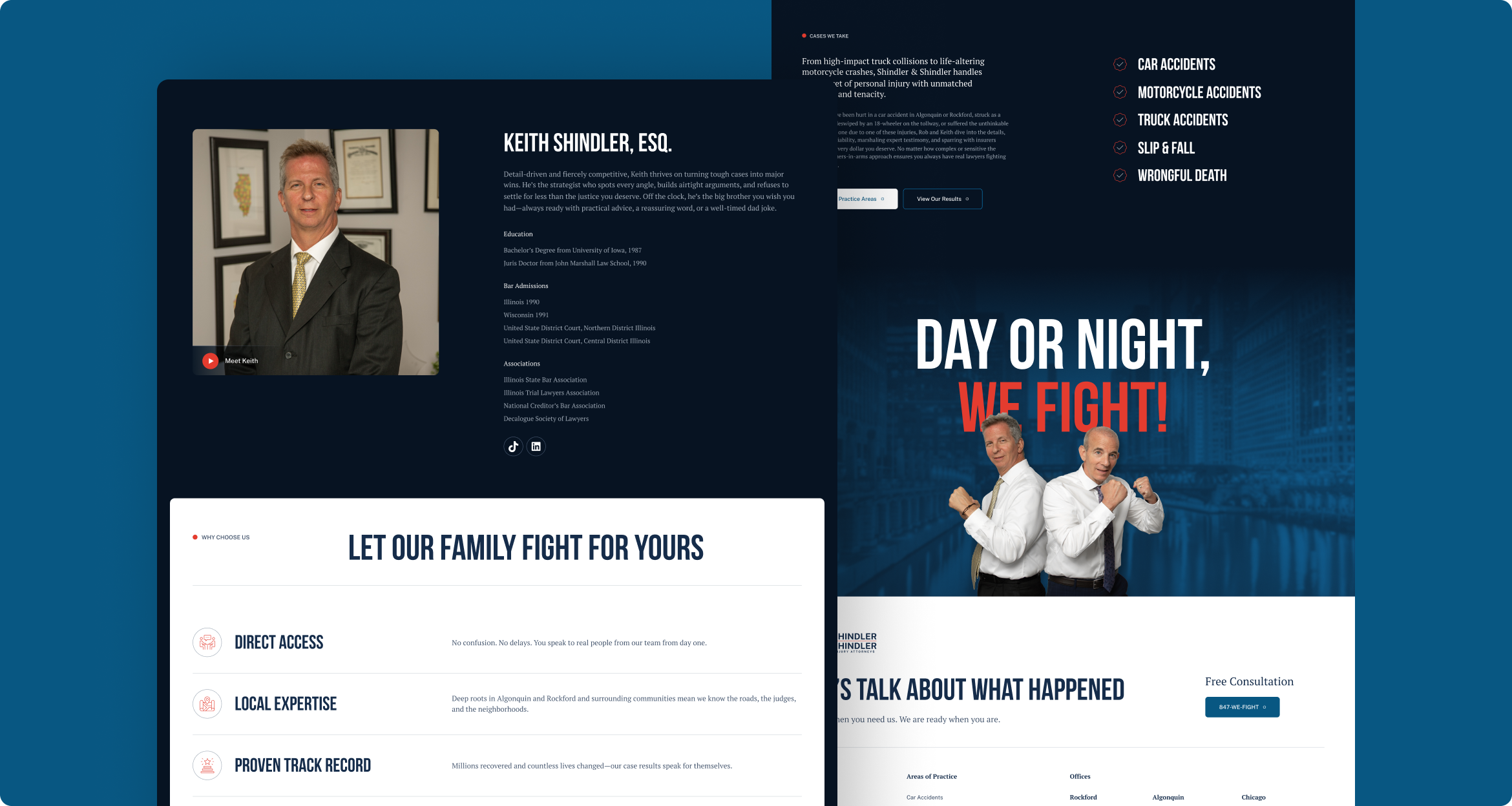 Leading direction and design, my goal was to create a site that felt trustworthy, straightforward, and easy to navigate—something that reflected their reputation as honest, hardworking trial lawyers.